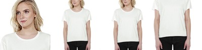 3.5 oz., 100% combed and ring-spun liquid cotton; 40 singles; Optimal stretch and recovery; Fashion fit; Side seams; Raw-edge sleeve and hem; Boxy fit; Music festival style; Tear-away label; Made in a W.R.A.P. certified factory;
