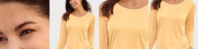 3.69 oz., 50% cotton 50% modal, 30 singles; High-end modal fabric; Peek-a-boo open shoulder; High/low hem; Tear-away label; Made in a w.r.a.p. certified factory;