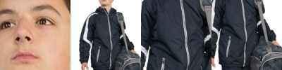 - Hidden left chest pocket with zipper and retractable clear ID holder