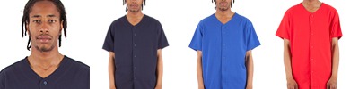 100% polyester propelit micromesh wicking knit with True Hue Technology® that helps prevent dye migration; Moisture-wicking; Tagless label; Full-button jersey; Buttons spaced for easy embellishment; Contrast color inserts and piping; Raglan sleeves;