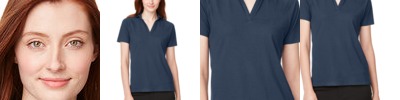 • Three-color rib trim at V-neck, shoulder, and waist