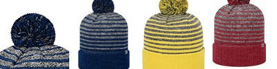 100% acrylic; One size fits most; Contrasting stripes are grey & black heather; 2-color pom; Top of the World headwear is transitioning to J America Headwear; Mixed branding may occur for a period of time;