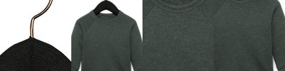 • Dyed-to-match jersey binding at shoulders, sleeves, cuffs and bottom hem