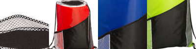 - Cinch bag with front open pocket and mesh side pocket