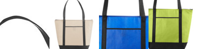 - Two-tone striped, webbing handles with hook and loop wrap
