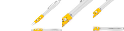 • Retractable curvy barrel ballpoint pen with Jetline's exclusive stock art grip featuring our Emoticon happy face