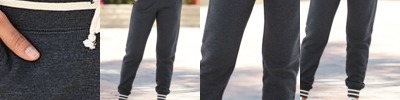 - 1x1 ribbing at cuffs, waistband, and side panels