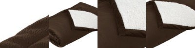 • 11-ounce, 100% polyester fleece; 12-ounce, 100% polyester sherpa