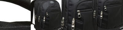• 600D poly/420D dobby polyFlapover construction with double lock closure Interior padded laptop compartment Padded tablet/e-reader sleeve Easy access zippered pockets for business essentials Dual side beverage/accessory holsters Adjustable and padded shoulder strap Top handleLaptop sleeve: 11"h x 16"w x 1.5"d