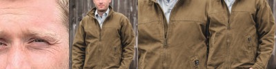 10 oz., super-duty 100% cotton duck; Medium-weight quilt lined taffeta; Water-repellent finish; Full-length heavy-duty brass zipper; Triple-needle stitched main seams; Double inside chest pockets; Insulated "High Back" design;