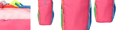This stowable daypack is unstructured for added versatility, making it a great school pack, gym bag or daily travel companion. Colors: One-of-a-kind. Every pack is a unique color combination. Be prepared for a total surprise! 100% repurposed, durable, 75D-210D nylon shell fabric Large main zippered compartment Front zippered pocket Ultralight mesh shoulder straps Adjustable sternum strap Two mesh side pockets Interior hydration sleeve Interior sleeve divider and hanging pocket Contrast Cotopaxi heat transfer logo on front Contrast Batac16 heat transfer on front Dimensions: 19'h x 11'w x 4'd Volume: 16L (976 cu. in.) Weight: 340 g (12 oz.) Note: Bags not intended for use by children 12 and under.