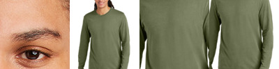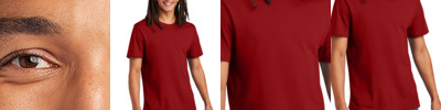 • 7.7-ounce, 81% recycled polyester/8% polyester/11% spandex interlock knit (heathers)